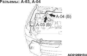 (1) Отсоединить разъем ABS-ECU и подсоединить специальный инструмент жгут проводов для проверки ABS (МВ991974), к разъемам со стороны ABS-ECU и со стороны жгута, после чего измерить напряжение со стороны разъема специального инструмента. (2) Перевести переключатель зажигания в положение ВКЛ. (3) Измерить напряжение между между клеммой питания датчика скорости колеса и (сигнальная клемма) №22 и «массой на кузове». НОРМА: Напряжение в системе ШАГ 10. Проверка жгута электропроводки между клеммой №22 разъема ABS-ECU А-04, и клеммой №1 разъема датчика скорости <ПП> колеса А-03, а также между клеммой №21 разъема ABS-ECU А-04, и клеммой №21 разъема датчика скорости <ПП> колеса А-03. • Проверить наличие обрыва в цепи датчика скорости <ПП> колеса. Q: Является ли результат проверки нормальным? ДА: Перейти к Шагу 11. НЕТ : Отремонтировать жгут электропроводки. ШАГ 11. Проверка датчика скорости колеса как единого узла